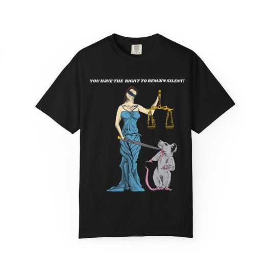 Lady Justice & Rat Unisex T-Shirt - Remain Silent - Spanish Version